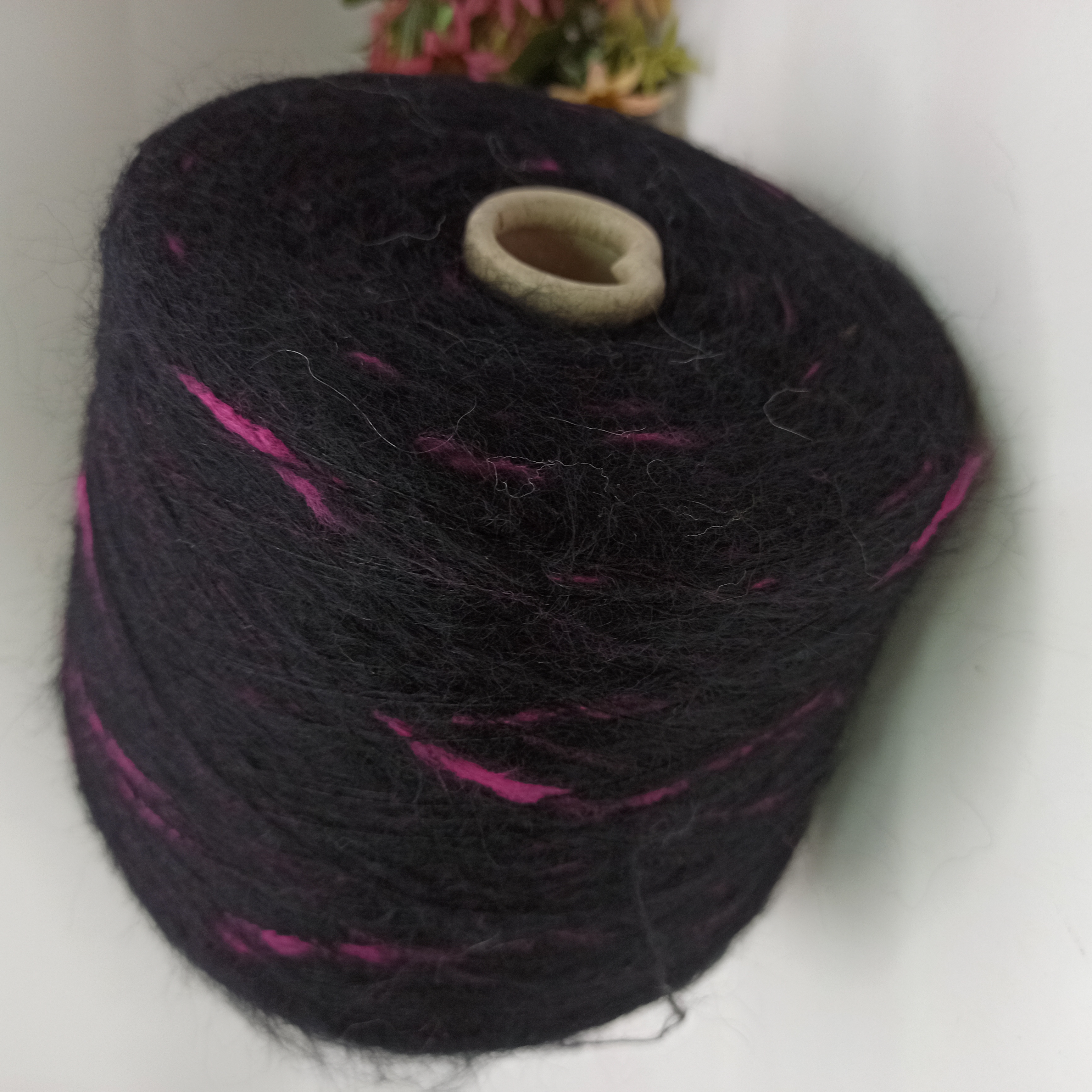 Кид мохер арт Galles фабрика Ilaria 1000м/100гр Черный с ярко розовым 11