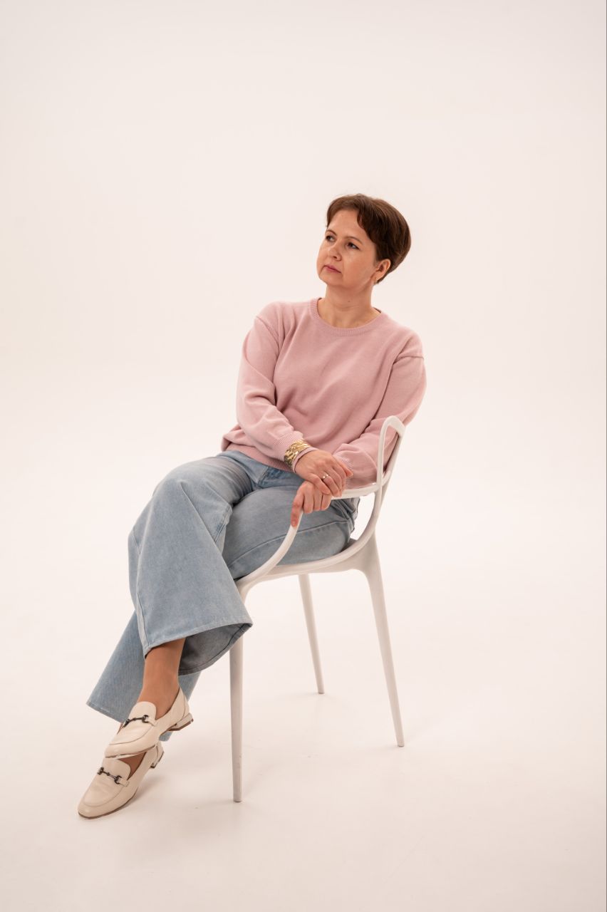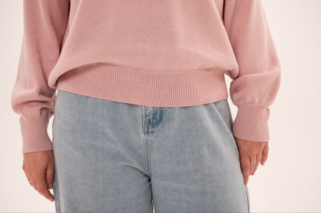 Простой и лаконичный. Идеальное решение на межсезонье, для офиса, на каждый день. За счет тонкости полотна, свитер прекрасно подойдет для ношения под легкие пальто и пиджаки, не создает излишний объем.